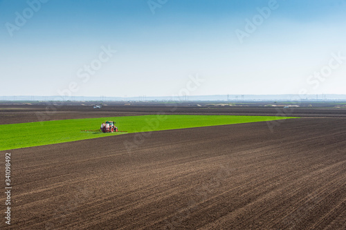 © Vesna, Fototapeta premium Tractor spraying wheat in field