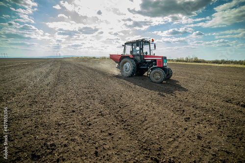 © Vesna, Obraz premium Tractor spreading artificial fertilizers