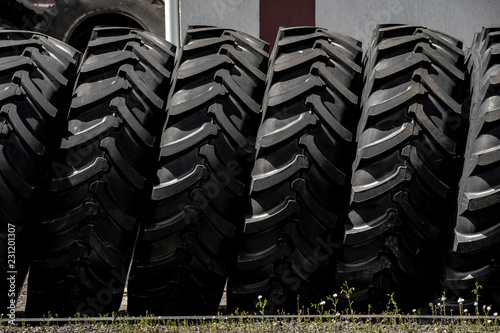 © Calin Stan, Fototapeta premium Tractor tires wheels closeup pattern