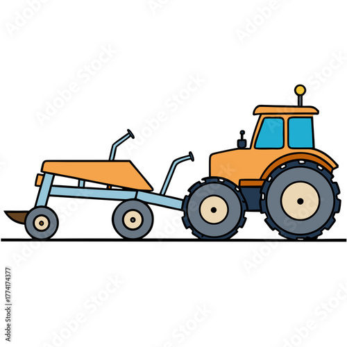 © Hakim, Fototapeta premium Tractor with a plow cultivating land in a flat vector design