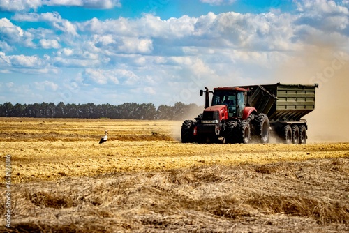 © Valerii, Fototapeta premium Tractor with the grain cart working on a field