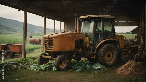 © Aditya, Fototapeta premium Tractor working on a plastic recycling plant