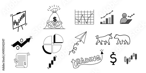 © Nidhi, Naklejka premium Trading doddle design collection,stock market doddle collection for background design,trading candles,Hand drawn collection.