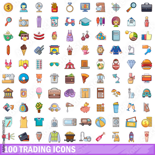 Fototapeta premium 100 trading icons set, cartoon style