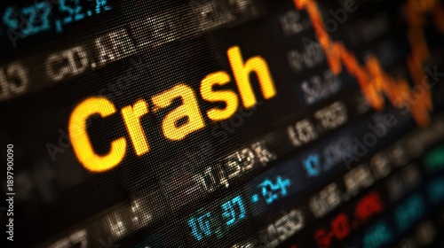 © nicole, Obraz premium Trading screen with falling price and 'Crash' text indicating gold market crash