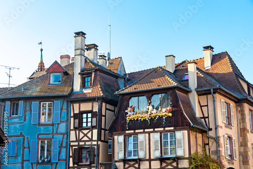 Fototapeta premium Traditional Alsatian half-timbered houses and river Lauch in Petite Venise or...
