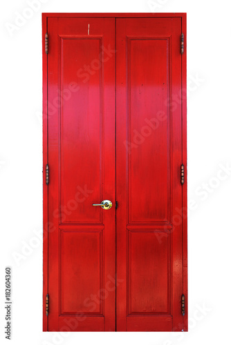 © bohbeh, Fototapeta premium Traditional antique wooden door isolated on white background