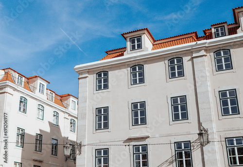 © Pedro, Fototapeta premium Traditional apartment building in Lisbon Portugal - exterior. Portuguese style vintage house with multiple condos.