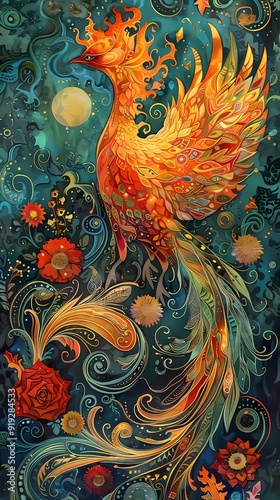 Obraz premium Traditional art nouveau style phoenix illustration poster background