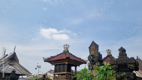 Fototapeta premium Traditional Balinese temple. Used as a place of worship and worship. Using wood and stone as materials. Straw is used as roof covering.