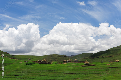 © Gil K, Obraz premium Traditional Basotho African huts in the Kingdom of Lesotho