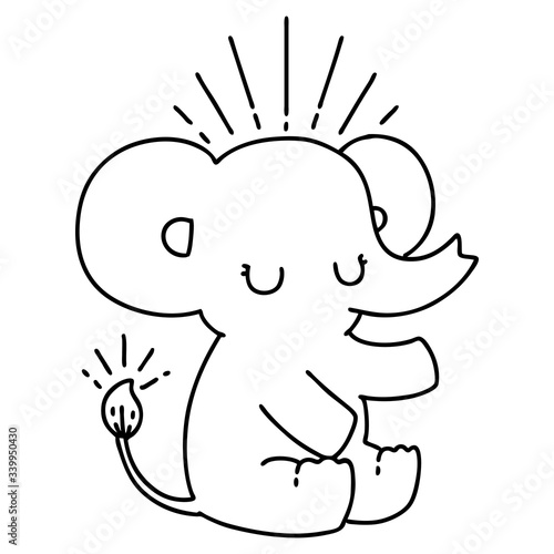 Fototapeta premium traditional black line work tattoo style cute elephant