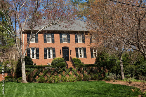 Obraz premium Traditional Brick Two Story on Freshly Mown Lawn