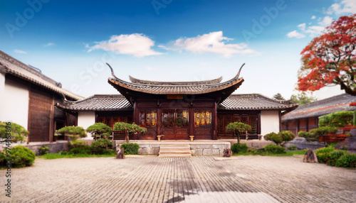 Fototapeta premium traditional Chinese architecture along a serene waterway, showcasing...