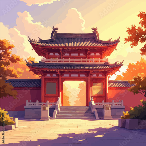 Fototapeta premium Traditional Chinese Architecture at Sunset