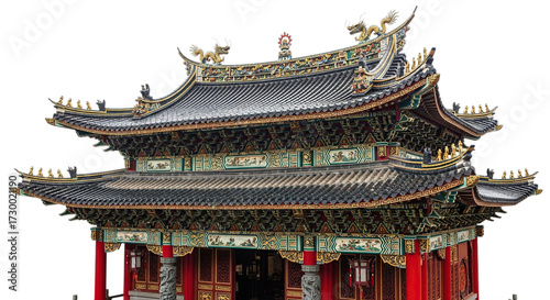© HabiburRahman, Fototapeta premium Traditional chinese architecture isolated on transparent background, showcasing intricate details and design