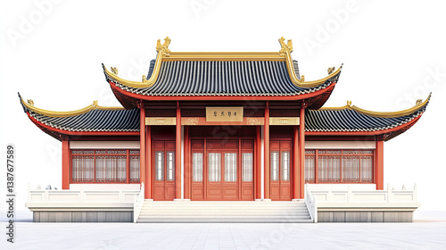 © Thanthara, Fototapeta premium Traditional Chinese architecture with ornate roof and red facade