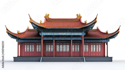© Thanthara, Obraz premium Traditional Chinese architecture with ornate roof and red pillars