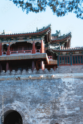 © Tanya, Fototapeta premium Traditional Chinese architecture with vibrant red pillars and intricate roof details