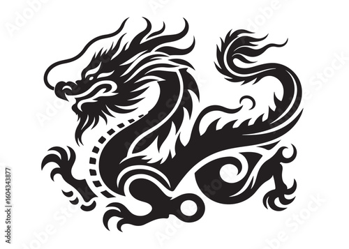 © Adobe design, Obraz premium traditional chinese dragon silhouette vector illustration, chinese new year dragon logo silhouette, chinese dragon logo design, chinese dragon logo vector silhouette on white background