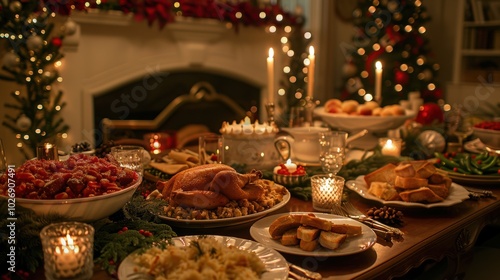 Fototapeta premium Traditional Christmas Dinner Set on Festive Table