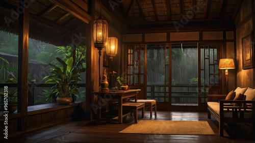 © Kittisak Srithongsuk, Naklejka premium traditional classic thai house at night