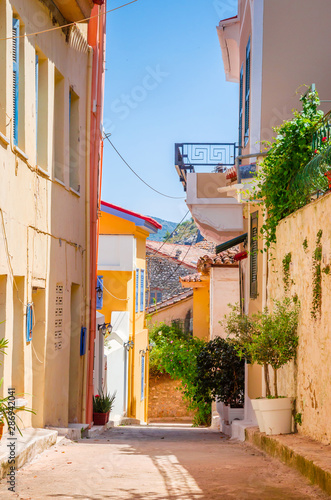 Fototapeta premium Traditional cozy greek street in city Nafplio, Greece