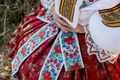 © Barbora, Naklejka premium Traditional czech folk costume (kroj), cultural heritage from the Czech Republic (Czechia, Southern Moravia, Central Europe), the woman wearing the national dress (costume, attire, clothing).