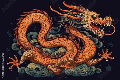© Jorge Ferreiro, Fototapeta premium traditional dragon illustration, ai generative