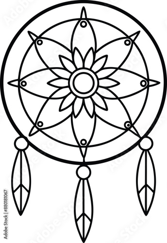 © Trendy CraftSVG , Fototapeta premium traditional dreamcatchers ornament illustration black and white