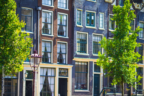 © travnikovstudio, Fototapeta premium Traditional dutch buildings and blocks of flats in in old