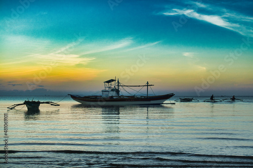 © John, Fototapeta premium Traditional fishing boat at sunrise. Bulalacao, Oriental Mindoro.