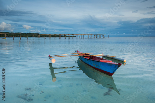 © udoikel09, Naklejka premium Traditional fishing boat floating on clean sea water.