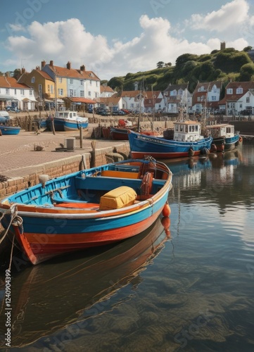 Fototapeta premium Traditional fishing boat in a harbour of Budleigh Salterton with boats docked, fishing boat, harbour, nautical