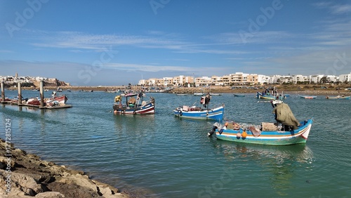 © SOUAFILMMAKER, Fototapeta premium Traditional Fishing Boats Docked on the Bouregreg River in Rabat, Morocco – October 8,2025