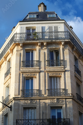 Obraz premium Traditional French house with typical balconies and windows. Paris.