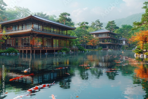 © Chanwit, Fototapeta premium traditional gardens ponds at Japan