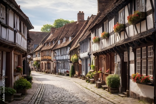 Fototapeta premium traditional half timbered house nestled within the heart of a picturesque village