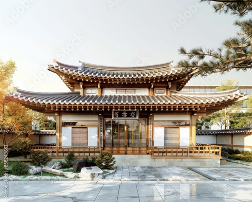 © kitidach, Naklejka premium Traditional hanok with modern rainwater harvesting system