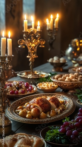 ![Naklejka premium Traditional Hanukkah feast laid out on antique dishes in a candle-lit room filled with ancient decor, [Hanukkah feast], [historic ambiance]](https://as2.ftcdn.net/v2/jpg/09/63/53/03/1000_F_963530350_tc0LwXzceH4JORMwMwaQx31APnralTJR.jpg)