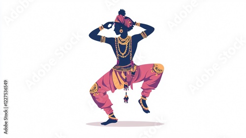 © Melicia, Obraz premium Traditional Hindu Dancer Man Flat Vector Illustration for Cultural Dance Performances and Celebrations