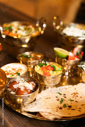 Naklejka premium Traditional Indian Thali Meal with Chapati and Curry