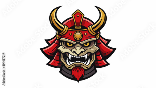 © Waseem, Fototapeta premium Traditional Japanese Demon Oni Mask with Samurai Helmet Design