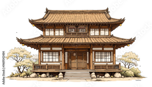 © Natthachai S., Fototapeta premium Traditional japanese house design japan architectural illustration tranquil environment front view cultural heritage exploration