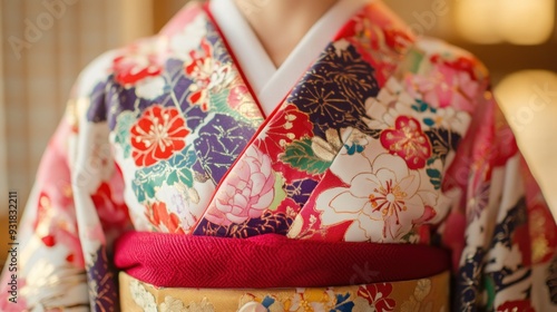 © Muhbahrir ghozali, Naklejka premium Traditional Japanese Kimono with Intricate Floral Patterns