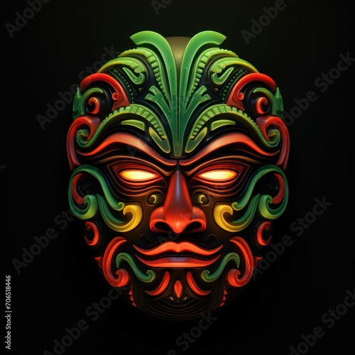 © Sohaib q, Naklejka premium Traditional Japanese Mask Yellow, Red and Green Colors