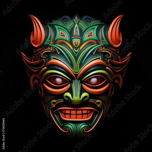 © Sohaib q, Naklejka premium Traditional Japanese Mask Yellow, Red and Green Colors