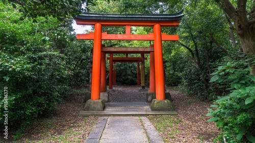 Naklejka premium Traditional Japanese Torii Gate in a Forest