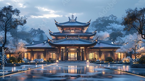 © saikat, Fototapeta premium Traditional japanese winter temple high resolution picture