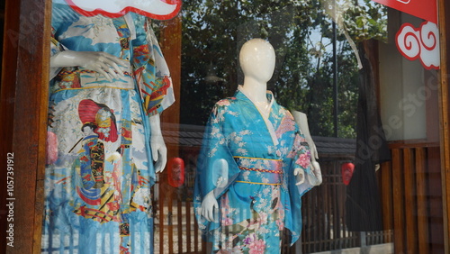 © Zulfatta Dwi Putra, Fototapeta premium Traditional Japanese Yukata Kimono Displayed in Glass Showcase